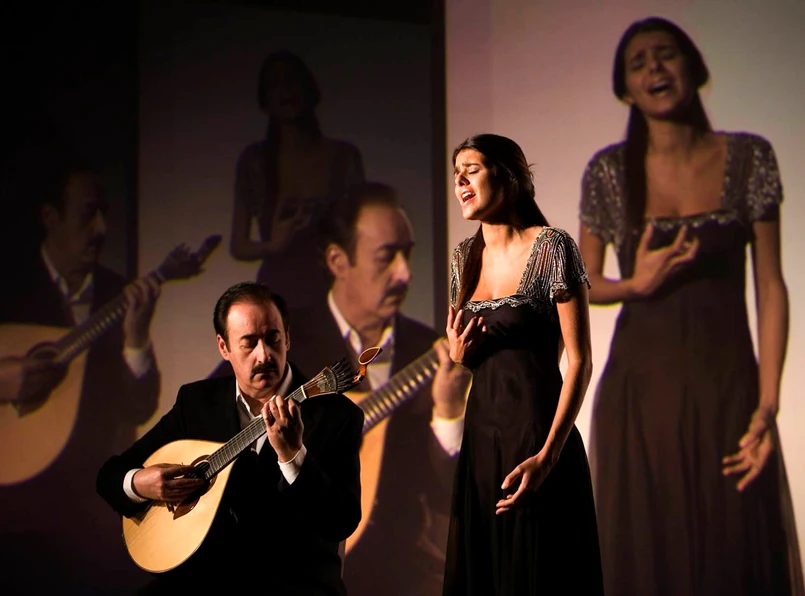 Fado narodziło się około roku 1820 w dzielnicach lizbońskich slumsów. Lamentacyjna romantyczna ballada stworzona została przez imigrantów z portugalskich kolonii. W fado mieściła się tęsknota za ojczyzną, niespełnione miłości i niespełnione nadzieje. Saura zaczyna swój film od prezentacji współczesnych zespołów inspirujących się fado (m.in. hiphopowego składu NBC, SP & Wilson) i dopiero potem cofa się stopniowo do tradycyjnych form opartych na solowym śpiewie. Odbywamy więc podróż do korzeni portugalskiej kultury. Tyle że Saura nie chce być przewodnikiem etnograficznej wycieczki. W muzyce i tańcu poszukuje najbardziej pierwotnego mitu wspólnego całej iberyjskości.