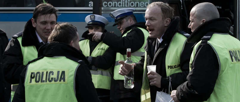 3 Szybko przyzwyczajamy się do tej ferajny. Kiedy drogówkowicze wysłużonym autobusem wracają z patrolowania pielgrzymki papieża w Polsce, stężenie alkoholu na metr kwadratowy wydaje się tak wysokie, że zdaje się przenikać nawet do sali kinowej...