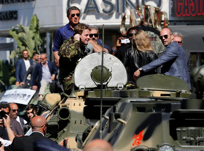 Stallone i jego "Niezniszczalni" twardziele wjechali czołgiem do Cannes [ZDJĘCIA]