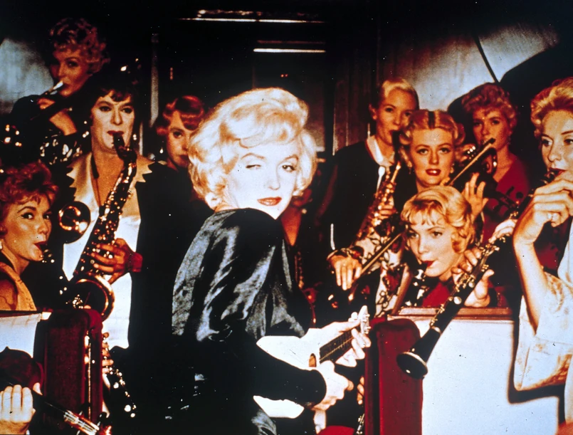 4 Z kolei w filmie bohaterka Josephine, czyli Jack Lemmon, mówi o postaci Monroe: – Spójrz na nią, jak się porusza! Jak galaretka na sprężynkach. Musi mieć chyba wbudowany jakiś motorek. Mówię ci, to zupełnie inna płeć. Niewątpliwie dla całej trójki było to tour de force aktorstwa.
