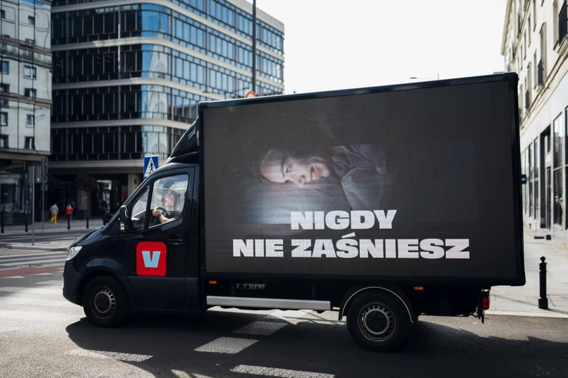 W poniedziałek na ulice Warszawy wyjechała ciężarówka z ekranami inspirowanymi serialem "Czarne lustro". Na ekranach emitowana jest reklama nowej rewolucyjnej platformy społecznościowej – Vlop! Zwraca ona uwagę zaniepokojonych przechodniów hasłami typu: "Nasz algorytm cię pochłonie", "Będziesz chciał więcej i więcej!".