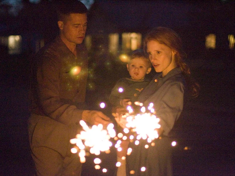W pierwszej części "Drzewo życia" to impresja na temat dzieciństwa, wyidealizowana czasoprzestrzeń. Mamy lata 50., widzimy przedmieścia Teksasu, poznajemy losy rodziny O’Brienów (solidna obsada, dobry Brad Pitt, rewelacyjna Jessica Chastain), którą naznacza śmierć jednego z trzech synów. Malick pyta o sens wiary – jeśli Bóg istnieje, dlaczego pozwala na śmierć naszych najbliższych? A może właśnie łaska wiary sprawia, że znajdujemy oparcie w religii, potrafimy uporać się z bólem, ze stratą ostateczną? Pytania o naturę człowieka reżyser przełamuje rozważaniami na temat ewolucji – w środkowej części filmu pojawiają się... dinozaury, jest wyśmienita sekwencja zdjęć z mikro- i makrokosmosu, zapierające dech w piersiach panoramy, bliżej nieokreślone plaże niebiańskie i piekielne lawy.
