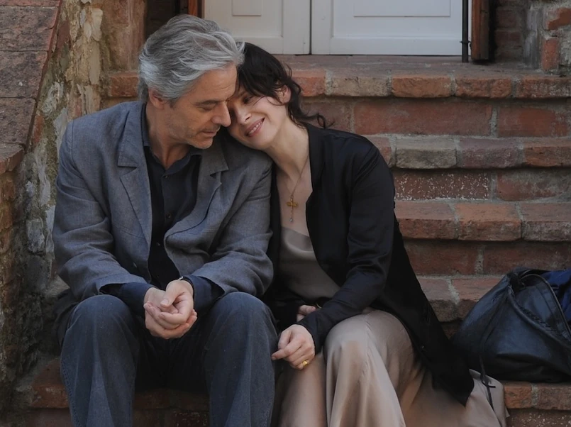 On (William Shimell) to angielski pisarz, który przyjeżdża do małego toskańskiego miasteczka, by promować swoją książkę. Ona (Juliette Binoche) prowadzi mały sklepik z antykami. Gdy oficjalne spotkanie z włoskimi czytelnikami dobiega końca, ona zabiera go na przejażdżkę. Pokazuje mu lokalne zabytki i zaprasza na kawę. Właścicielka kawiarni bierze tych dwoje za skłócone małżeństwo – a oni gładko wchodzą w wyznaczoną im wskutek pomyłki rolę. Zainaugurowana w ten sposób rozmowa-spektakl jest nie tyle dialogiem, ile serią monologów. Ona i on stają się aktorami, oboje grają i z dużą swobodą odnajdują się w tej odrealnionej sytuacji, lecz nietrudno zauważyć, że stoją nie na jednej, lecz na dwóch osobnych scenach. Ona wydaje się mimo wszystko prawdziwsza, być może dlatego, że cały czas wręcz kipi emocjami i głośno daje wyraz pretensjom nagromadzonym w niej przez lata; on to powściągliwy cynik, który w postać męża wnosi całą swoją surowość oraz irytujące zblazowanie.