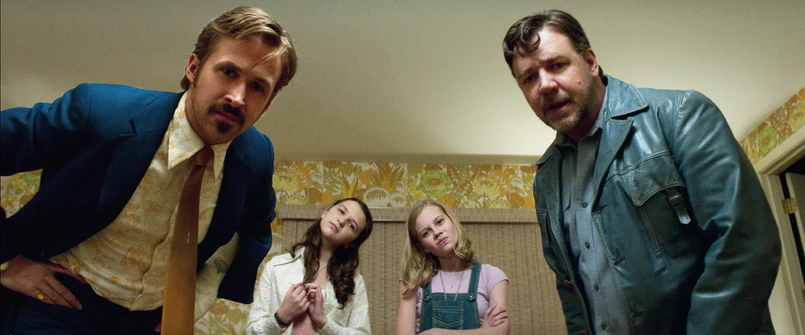 Ryan Gosling (ten przystojny) dostaje zadanie odnalezienia martwej dziewczyny i drugiej, która zginąć może już wkrótce. Russell Crowe (ten napakowany) ma z nim zrobić porządek. I tak od bitki do złamanej ręki, od jednego trupa do głośnej imprezy rodzi się na ekranie doskonały duet kumpelsko-detektywistyczny. Marny prywatny śledczy z problemem alkoholowym i najemny zabijaka (zadając sobie pytanie: gdzie jesteś Amelio?) odkrywają kolejne powiązania między światem polityki i rozkwitającej pornografii. Dzieje się dużo, a humor choć czasem niezbyt grzeczny, zawsze trzyma poziom.